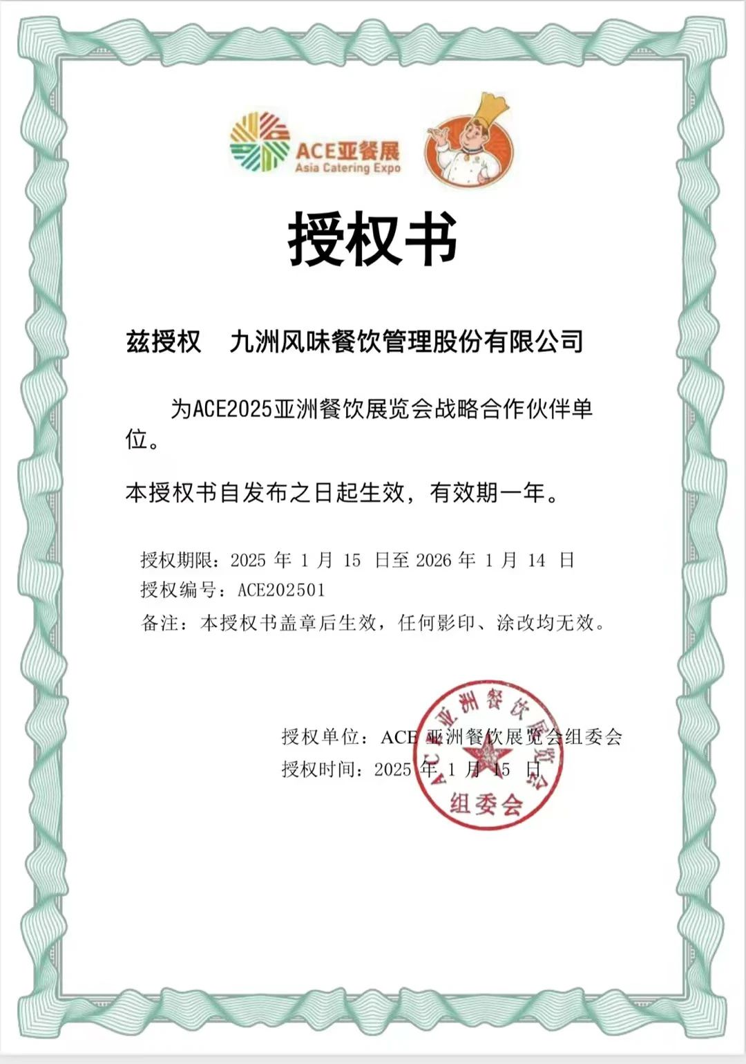 1月19日,ACE亞洲餐飲展覽會(huì)(簡(jiǎn)稱ACE亞餐展)組委會(huì)一行到訪九洲風(fēng)味餐飲管理股份有限公司(簡(jiǎn)稱九洲風(fēng)味)。雙方就共同做大做強(qiáng)ACE亞餐展達(dá)成共識(shí),并將在ACE2025第三屆亞洲餐飲展覽會(huì)(簡(jiǎn)稱ACE第三屆亞餐展)展開戰(zhàn)略合作。