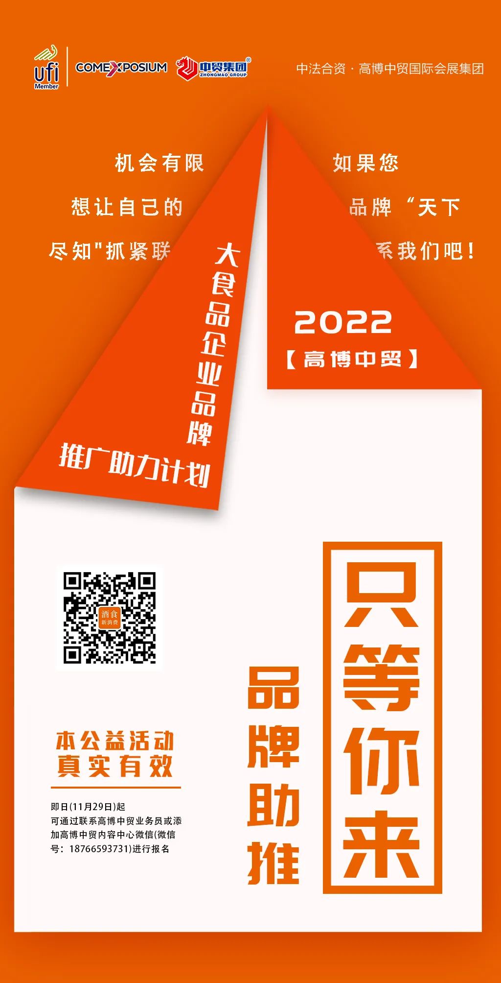 本公益活動真實(shí)有效,即日(11月29日)起,可通過聯(lián)系高博中貿(mào)業(yè)務(wù)員或添加高博中貿(mào)內(nèi)容中心微信(微信號:18766593731)進(jìn)行報(bào)名,我們將根據(jù)報(bào)名順序逐一與企業(yè)進(jìn)行聯(lián)系,著手排期進(jìn)行助力計(jì)劃。